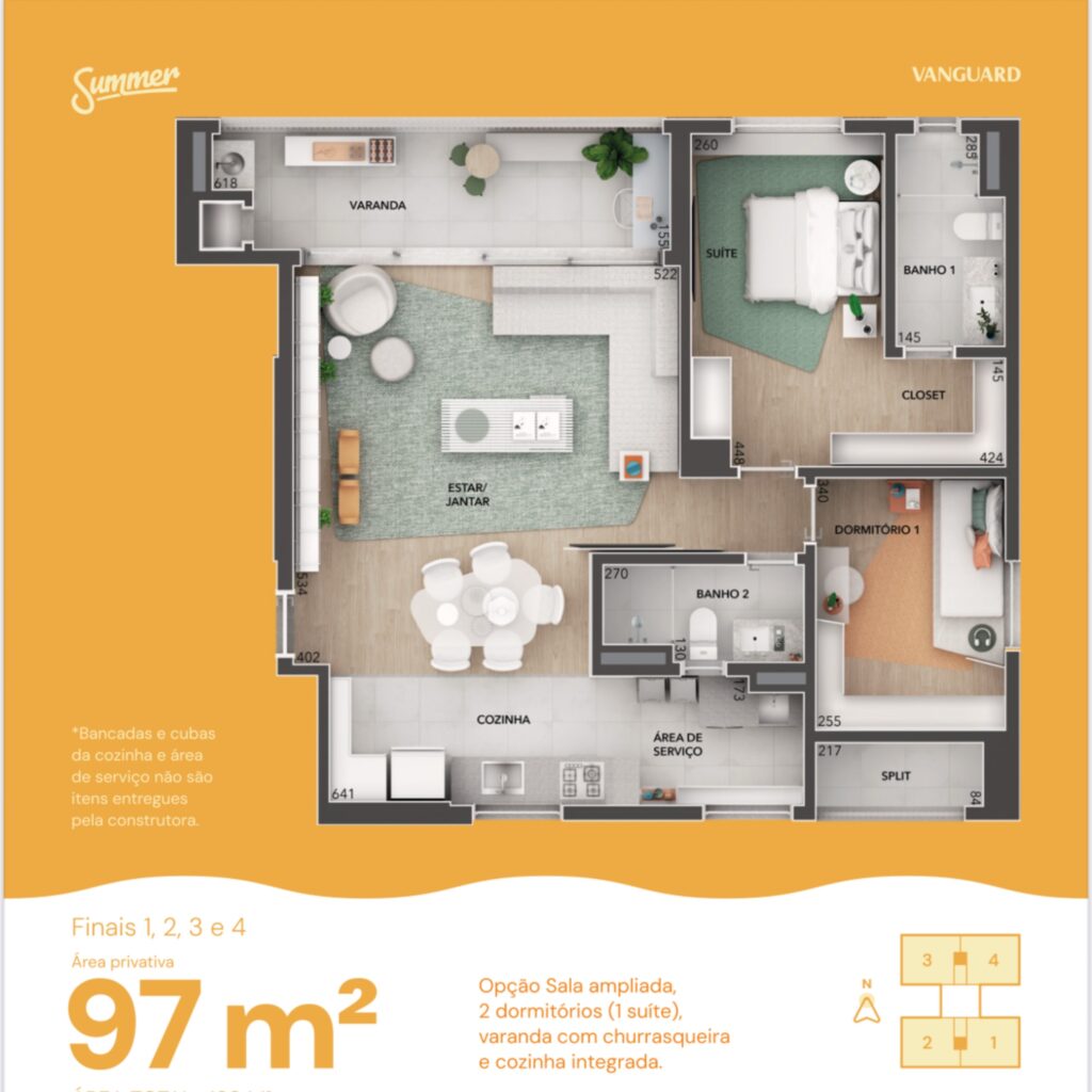 Conheça o Summer! Um lugar que combina leveza e estilo com plantas de 80m² e 97m², perfeito para quem busca um espaço que traduz conforto e qualidade de vida. Aproveite cada detalhe e venha viver essa experiência única!
